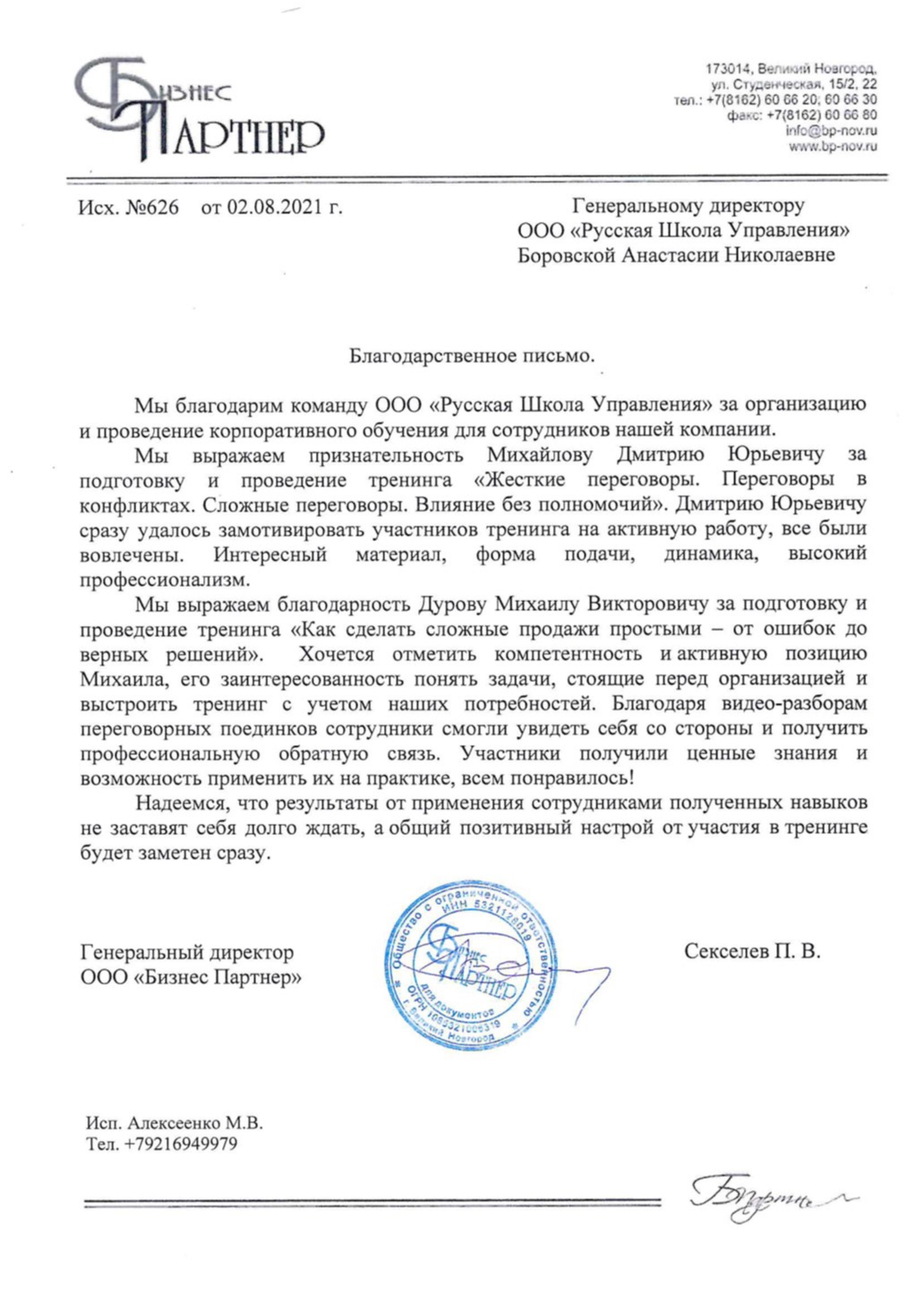 Хотим выразить благодарность Елизавете и организаторам за их профессиональный подход и энтузиазм, который они передавали нам. Обучение на тему управления персоналом было полезным и информативным. Оно помогло нам лучше понять сложности, связанные с взаимодействием с людьми в организациях, и предоставило практические инструменты для эффективного управления командами. Одним из главных преимуществ данного курса было то, что он охватывал различные аспекты управления персоналом, такие как найм, развитие, мотивация и оценка сотрудников. Благодаря этому получили более комплексное представление о процессе управления. Курс также акцентировал внимание на важности создания благоприятной рабочей среды, где сотрудники чувствуют себя вовлеченными и мотивированными. Он помог нам осознать, что эффективное управление персоналом не ограничивается только техническими навыками, но также требует понимания человеческих отношений и умения общаться с командой. Мы особенно оценили практические задания, которые давали возможность применить полученные знания в реальных ситуациях. Это помогло нам закрепить свои навыки и убедиться, что мы правильно понимаем материал. В целом, мы считаем, что обучение на данную тему ценным и полезным для нашей команды. Оно позволило нам улучшить свои навыки работы с персоналом. Определенно рекомендуем данный курс всем, кто хочет развиваться в области управления персоналом и хочет быть готовым к современным вызовам на рынке труда»